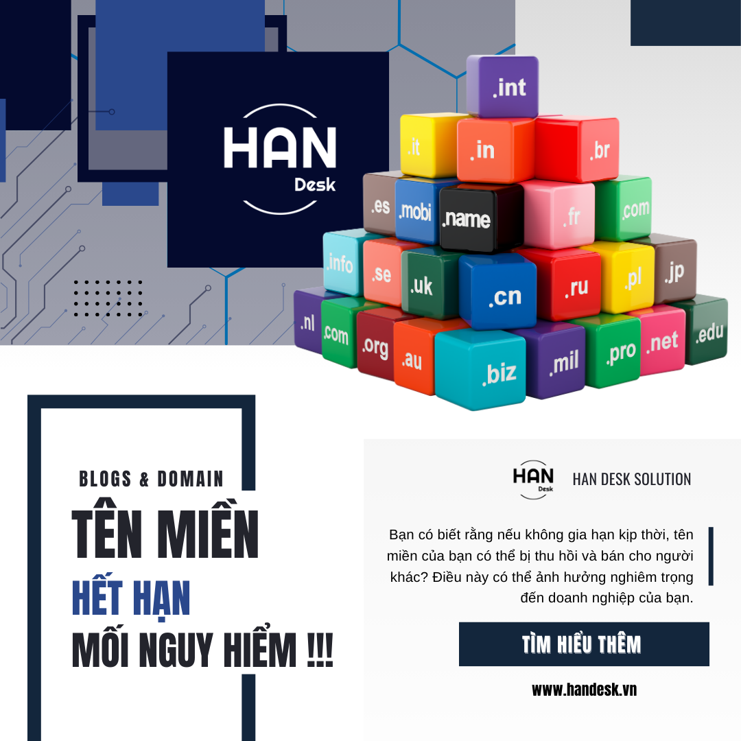 Ví dụ: handesk.vn, trong đó "handesk" là phần tên miền, còn "vn" là đuôi miền.